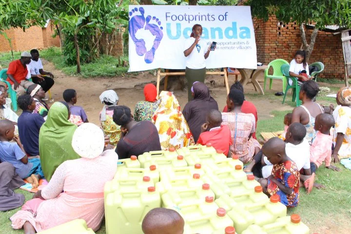 In July, Footprint of Uganda launched a soccer balls and pads outreach program, bringing together 90 participants from various age groups. The girls and women received a box of pads each, ensuring their comfort and confidence, while the boys enjoyed playing soccer with their new soccer balls.